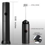 • EASY TO CLEAN AND STORE: The durable convenient metal stand gives easy access for foamy goodness in seconds. Cleanup for this matcha wisk & frother is even faster. To clean just put the whisk in hot running water and briefly turn it on – instantly clean! When stored on counter or table it sits nicely next other coffee accessories. Our powerful and durable hand-held milk frother is powered by two AA batteries (included) with a compact electric design that easily fits in a drawer.
